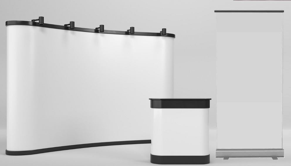 Roll-up banner, oval veya düz örümcek stand, fuar standı, poster tutucular, alüminyum çerçeve, alüminyum panolar, menü panoları, kaldırım panoları, brüşürlük, föylük, vinil branda vinil afiş, bez bayrak vb.